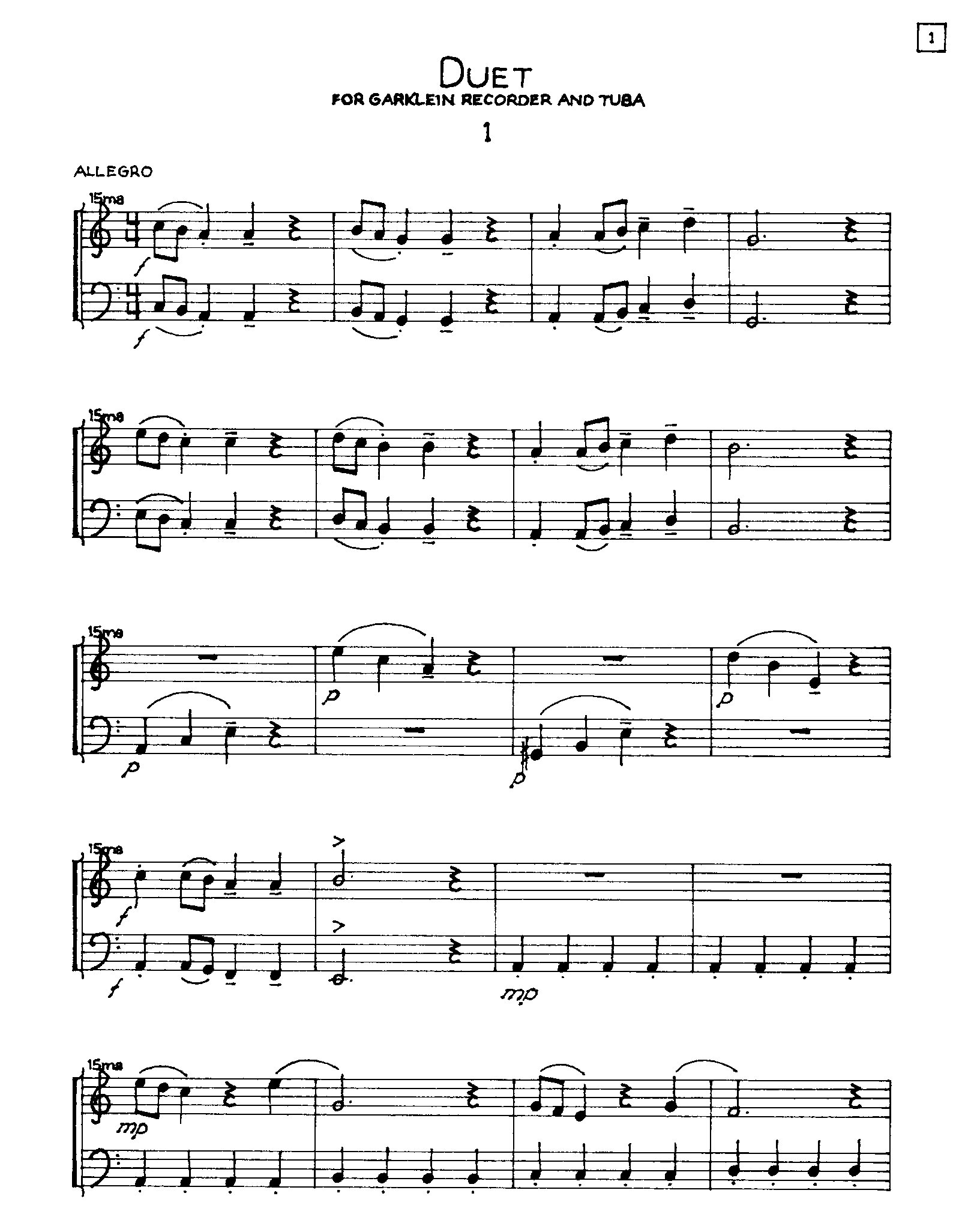 Duet for Garklein Recorder and Tuba